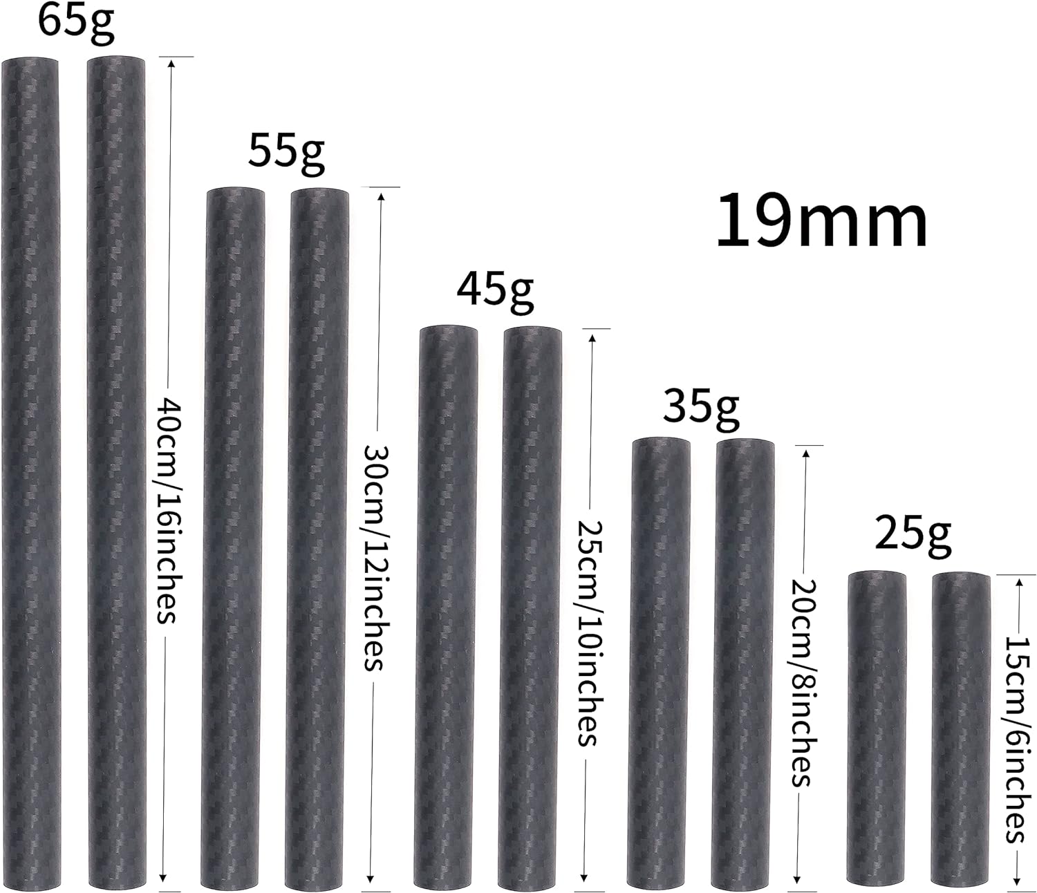 2X 6inch / 8inch /10inch / 12inch / 16inch Carbon Fiber 19mm Rod Tube for 19mm Rail System Video Filmmaking DSLR Follow Focus Matte Box,No Threaded