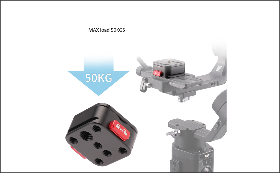 • Made of aluminum,compact,sturdy and durable,Max load 50kgs.Size of base+plate is 38*24.5*19mm.