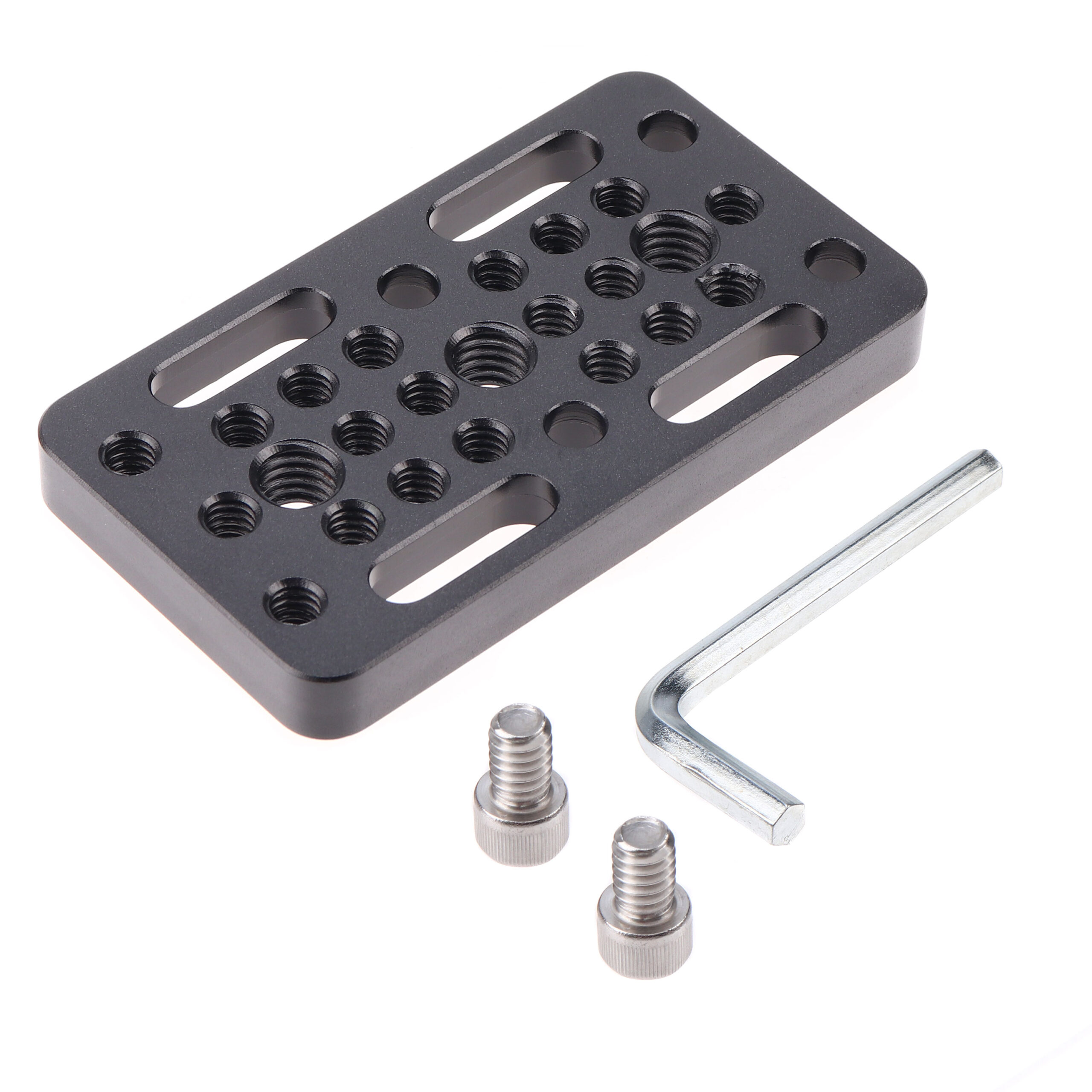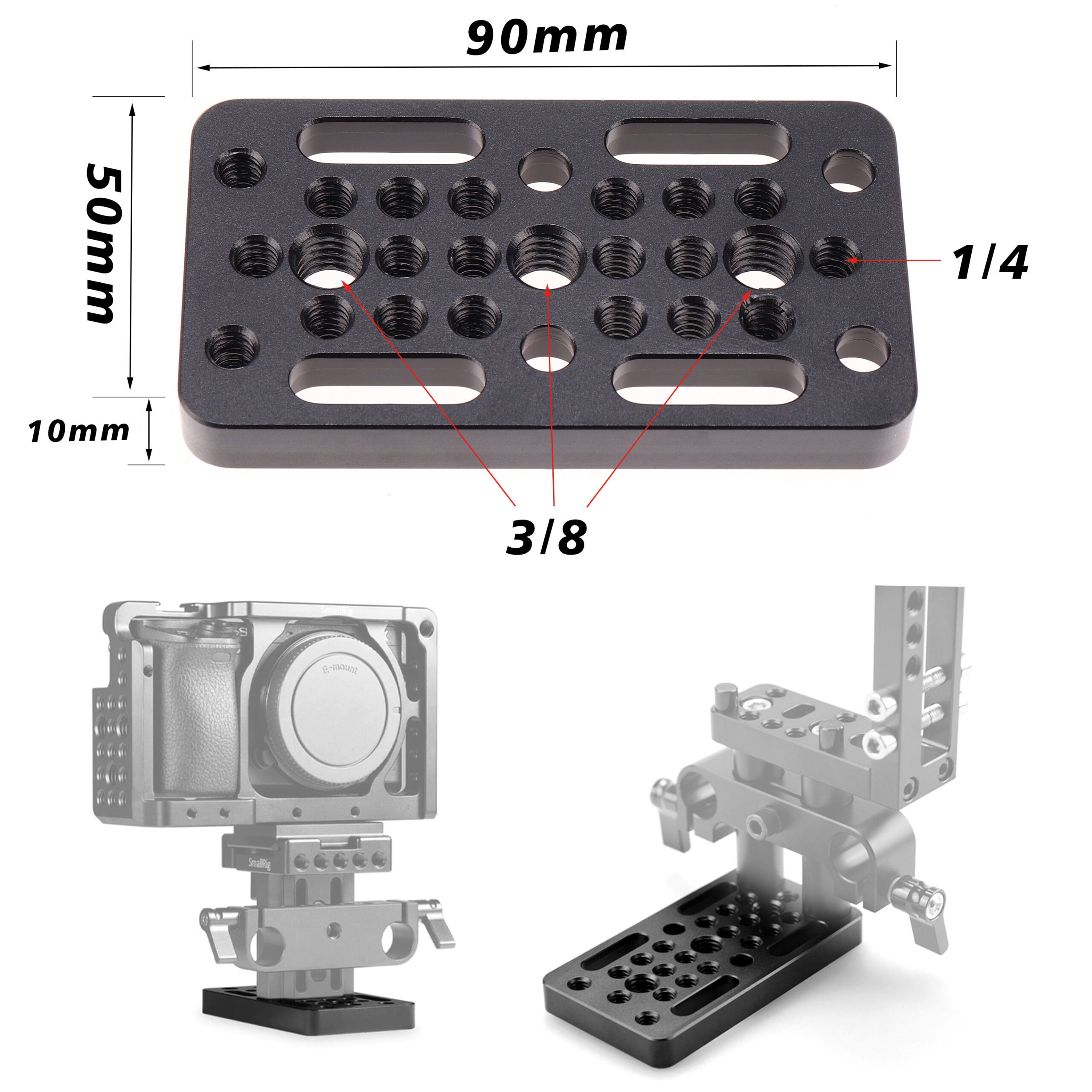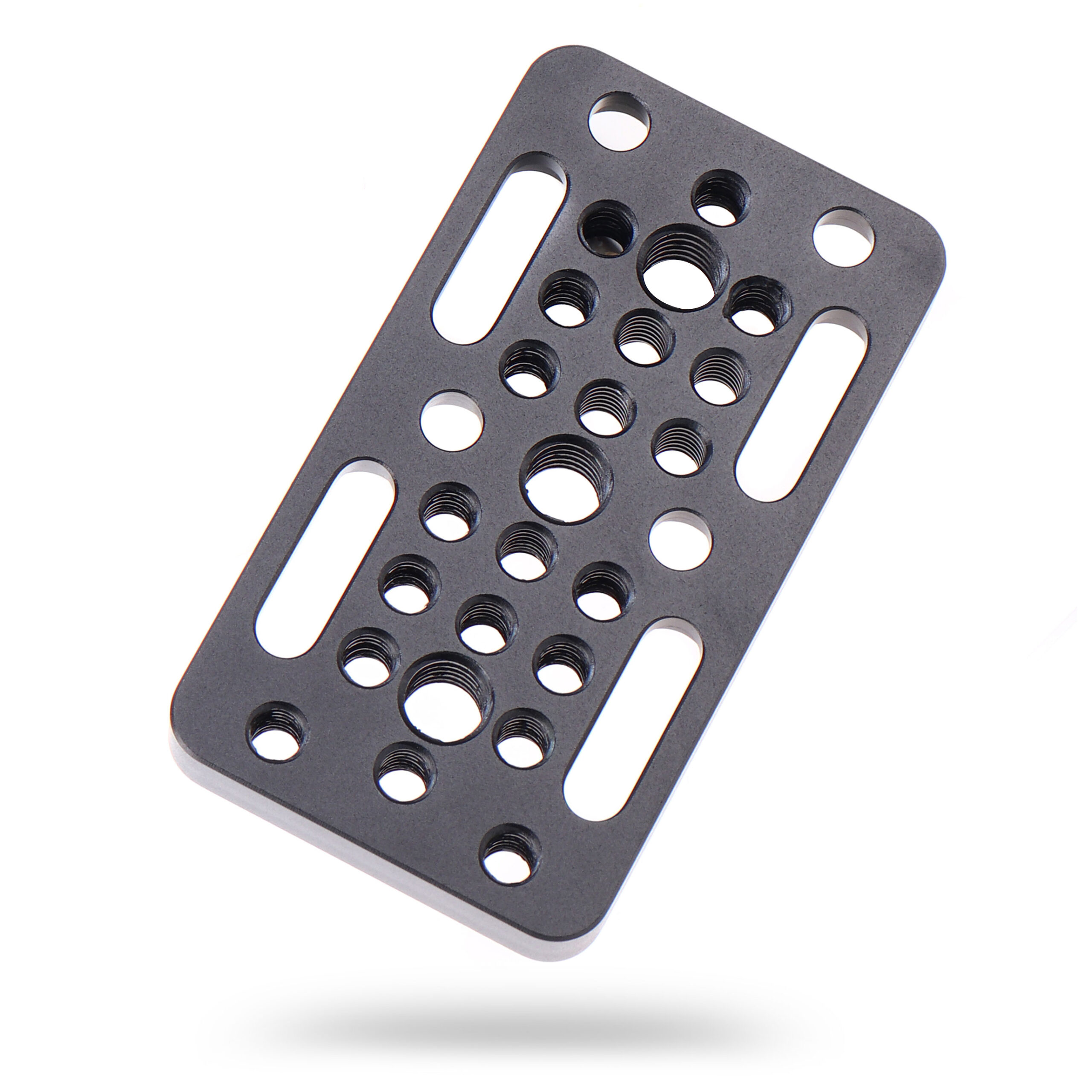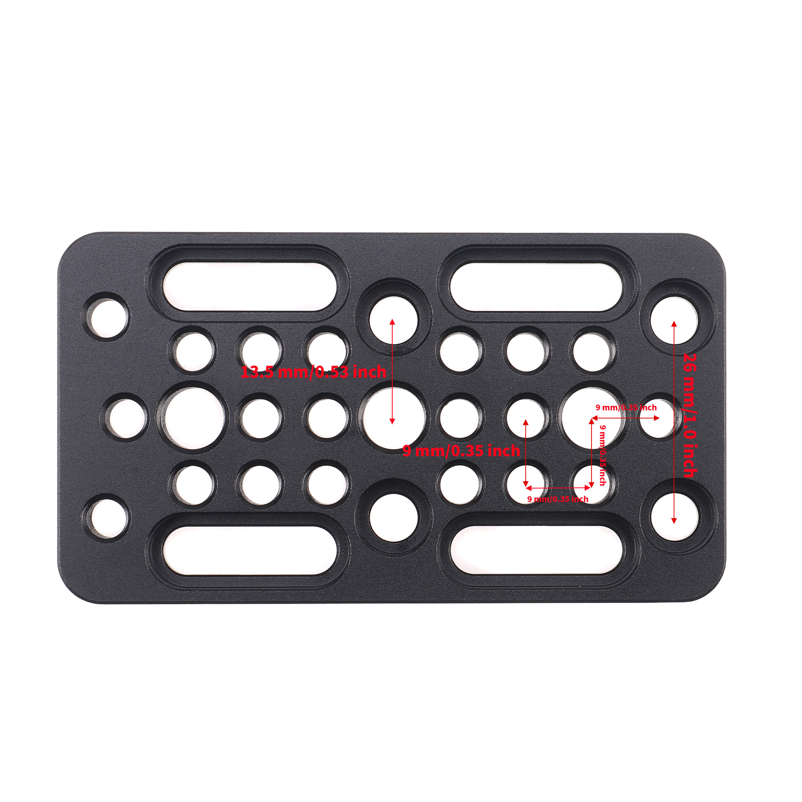 2. This long version cheese plate is equipped with numerous 1/4″-20 and 3/8″-16 threaded mounting holes in standard spacing (9mm center to center).