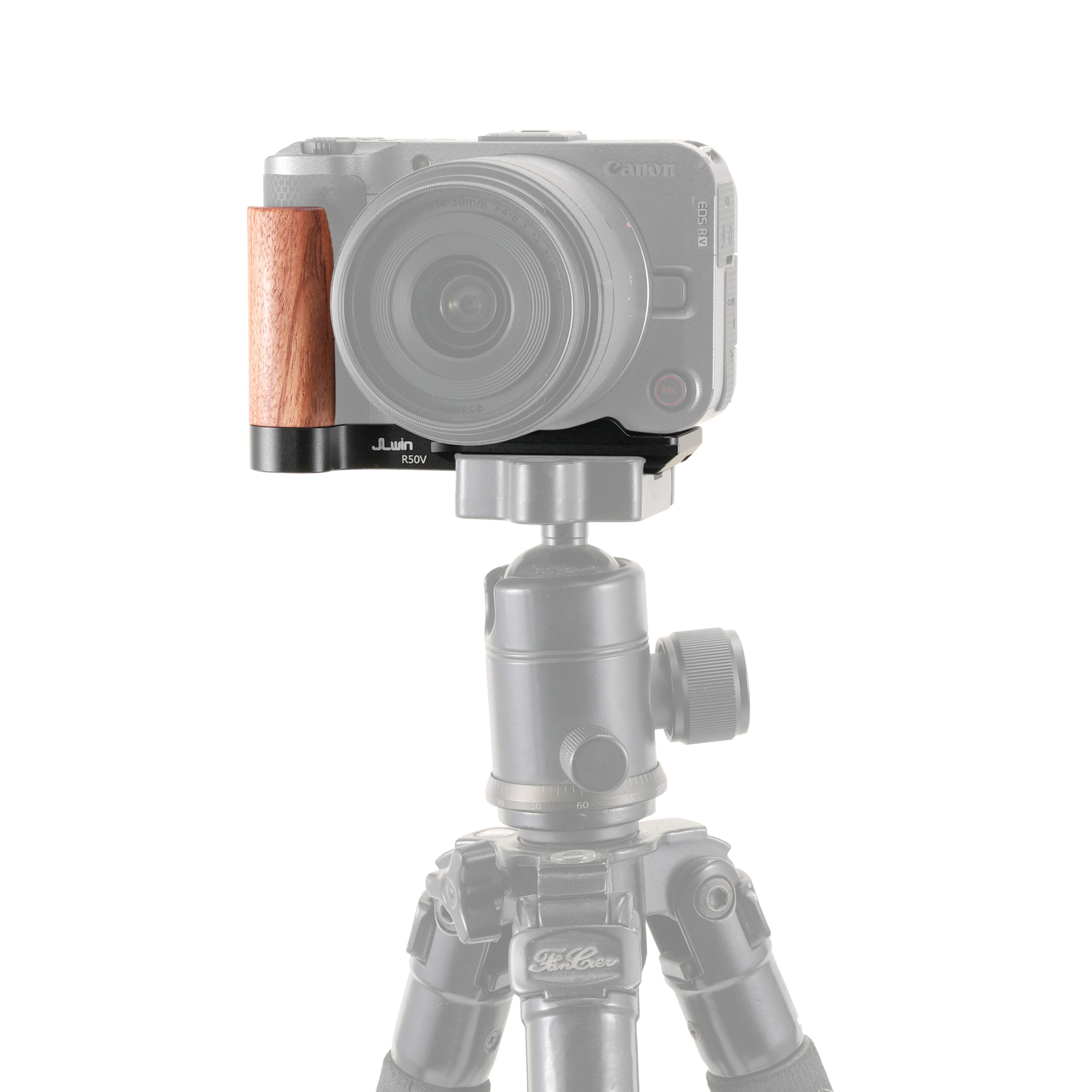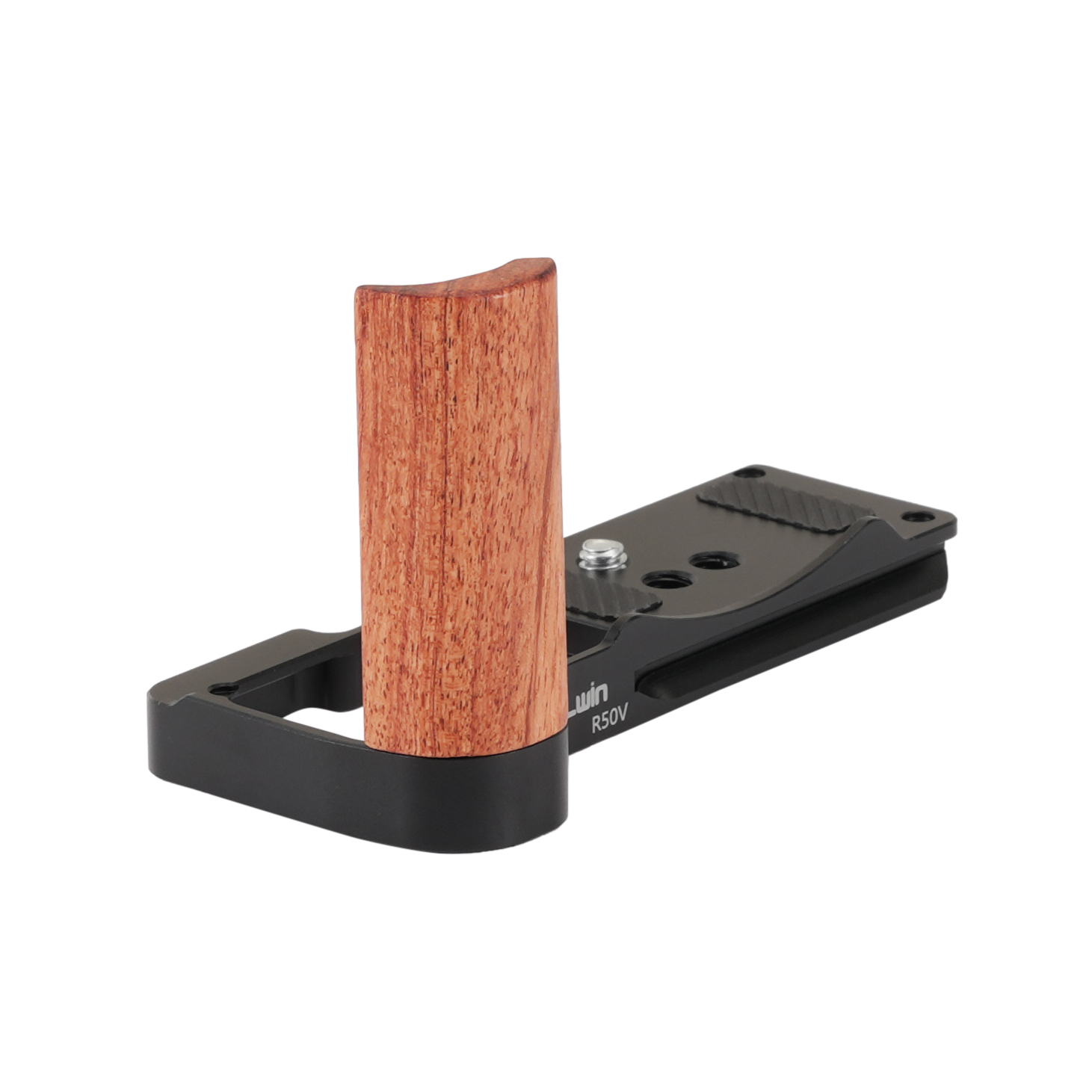 FOTGA JLwin Slim Lightweight Wooden L-Shape Side Handle Hand Grip for Canon R50V Mirrorless Camera,with 1/4″-20 Mounts,Arca Swiss Tripod Base Plate