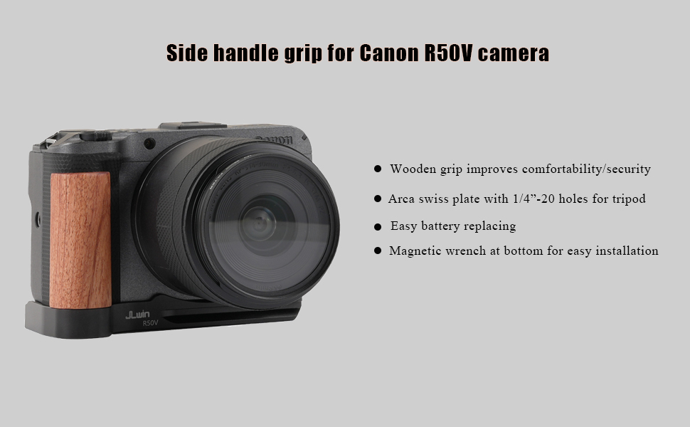- Wooden side handle grip is specially designed for Canon R50V mirrorless camera,to better stabilize the camera for capturing wonderful moments.