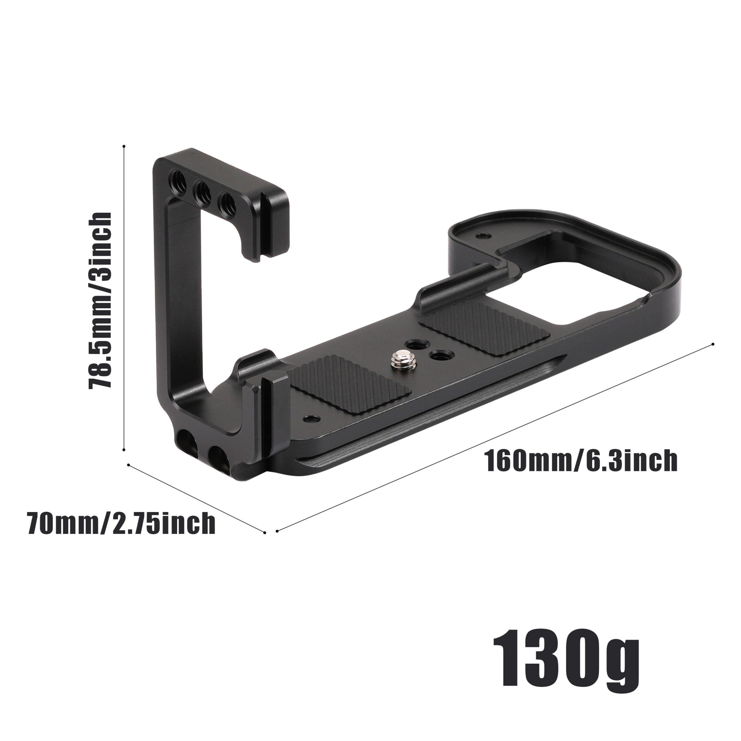 • ✅ Made of aluminum alloy.Weighs 130g / 0.28lb.Package includes: 1 x L-shape vertical camera quick release plate