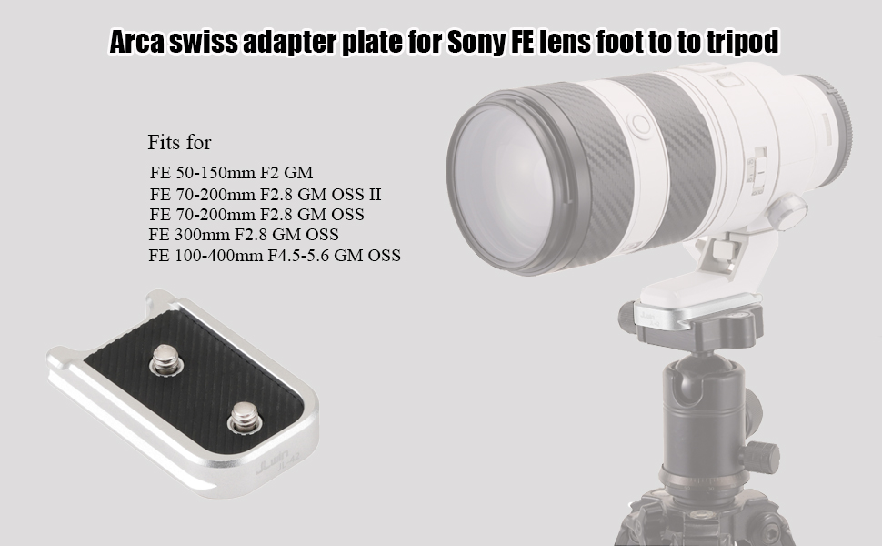 The plate is specially designed for Sony FE lens foot to mount on arca swiss tripod.