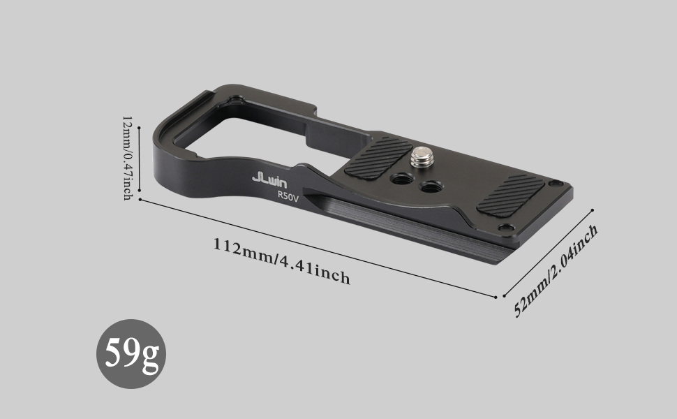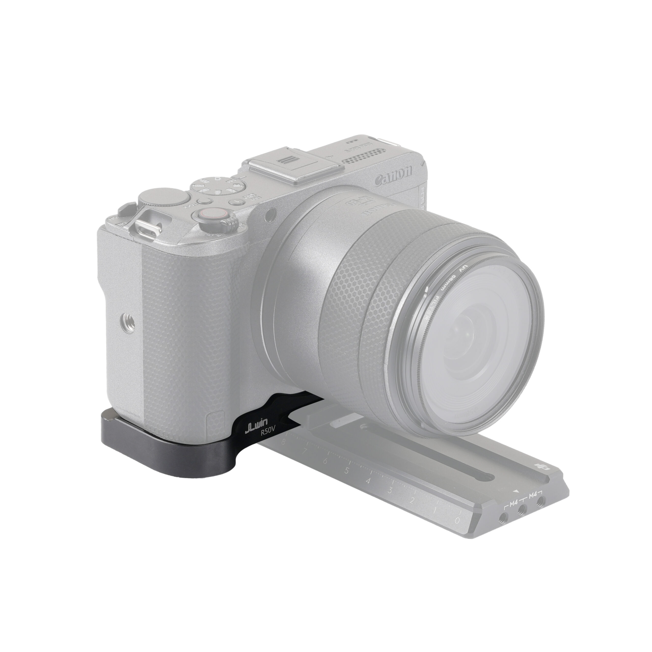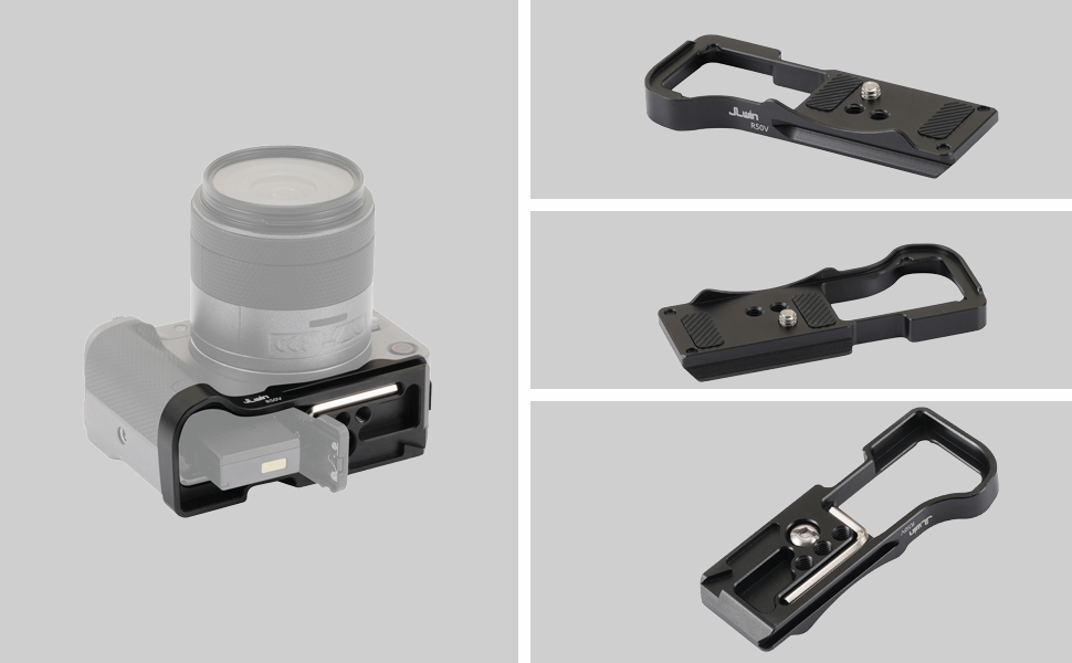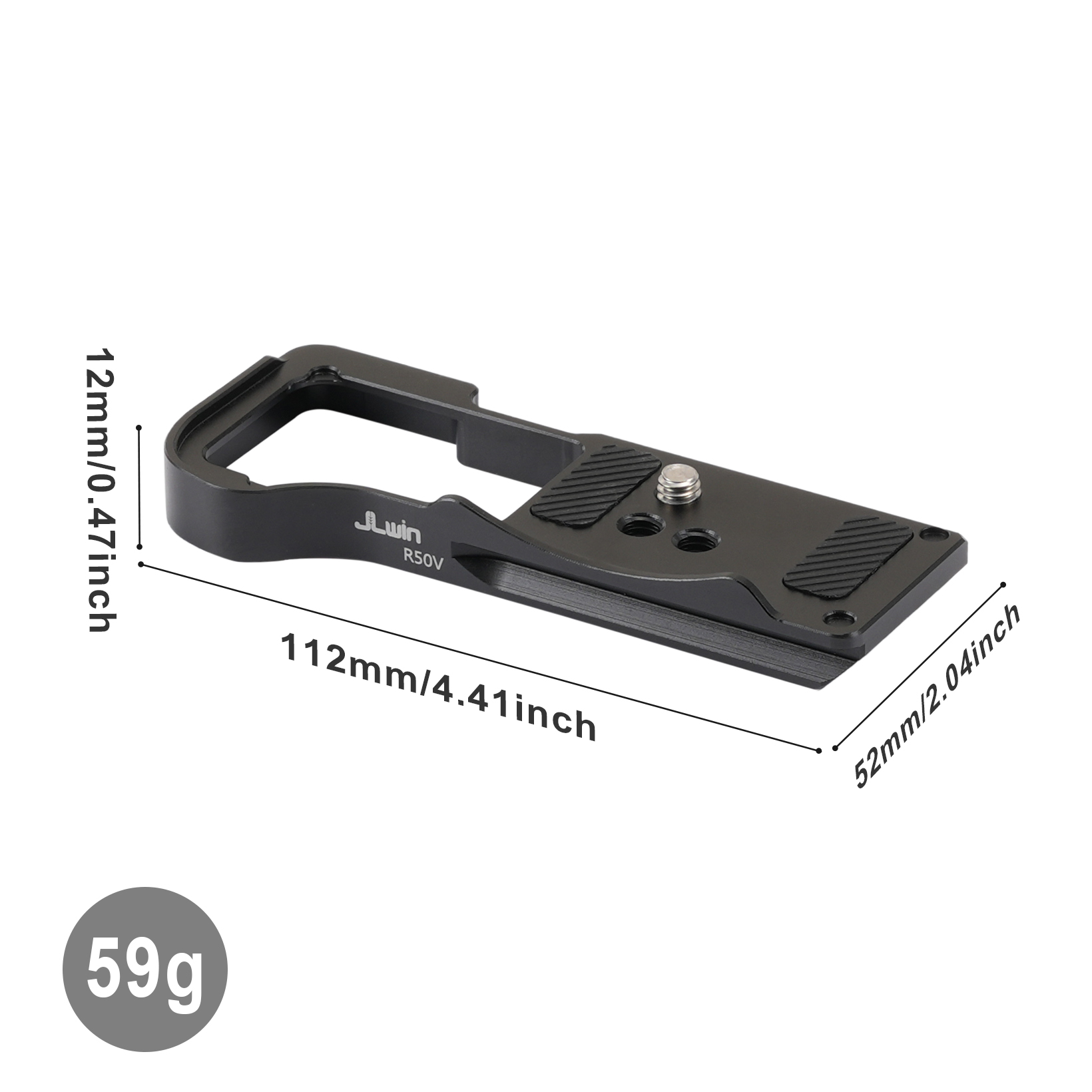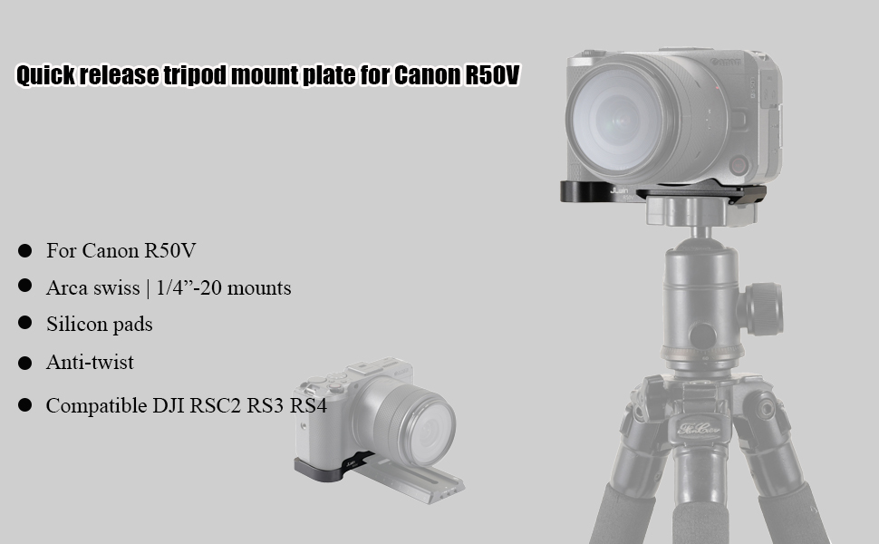 - This base plate is specially designed for Canon R50V camera,it securely attaches to camera through a 1/4″-20 screw,silicon pads prevents scratching.Magnetic wrench at bottom for easy and quick attaching to camera.