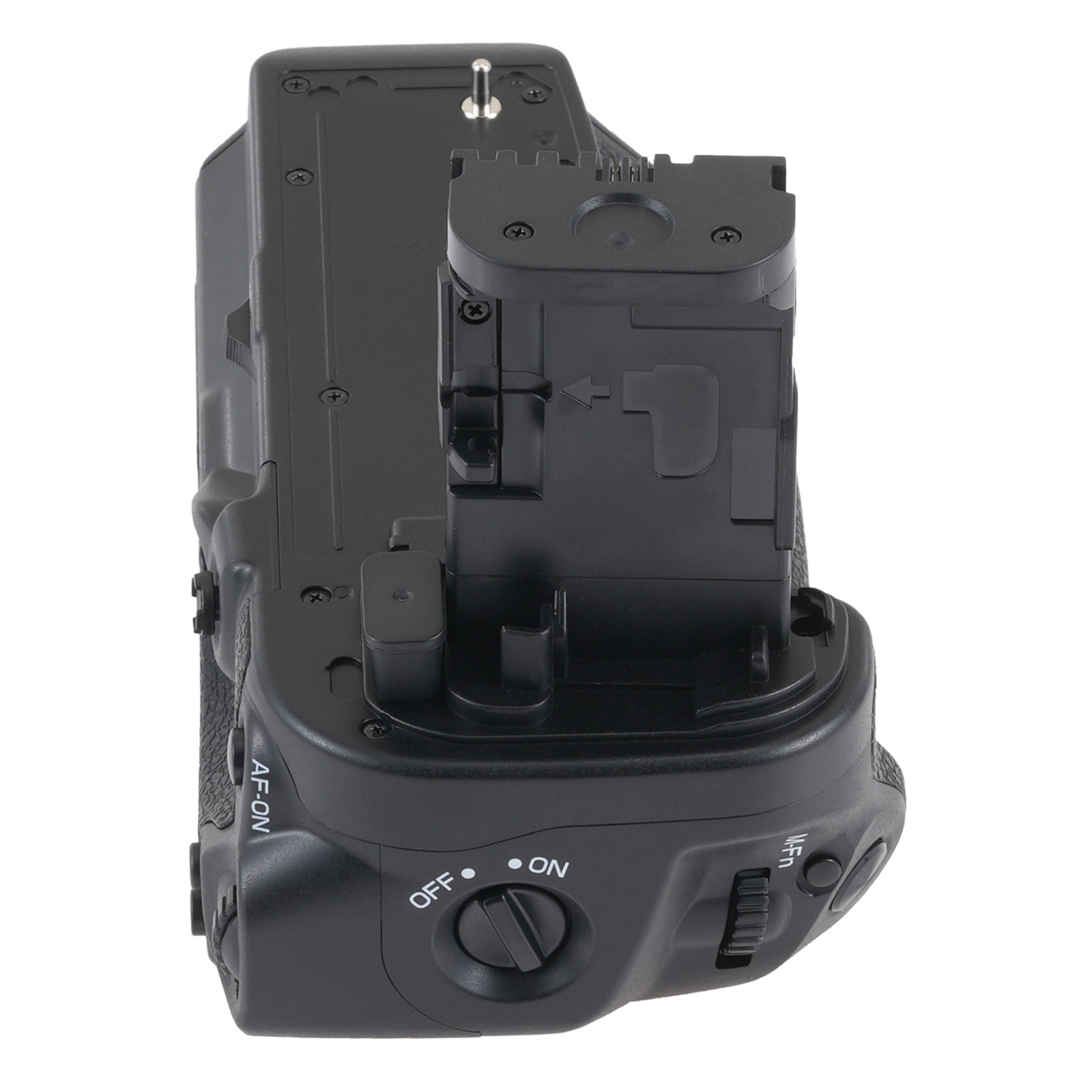 Battery Lid Storage: A dedicated slot on the grip stores your camera’s original battery door, ensuring you never lose it.