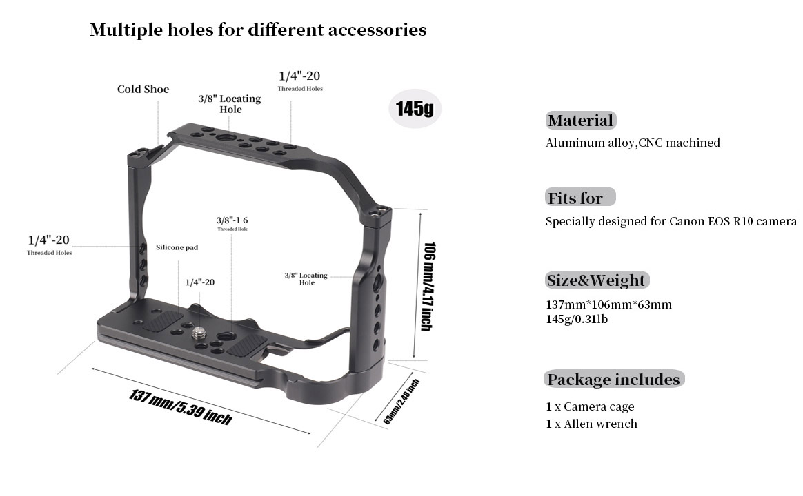 • Specially designed for Canon EOS R10 DSLR camera,stabilize and protect camera during shooting.
