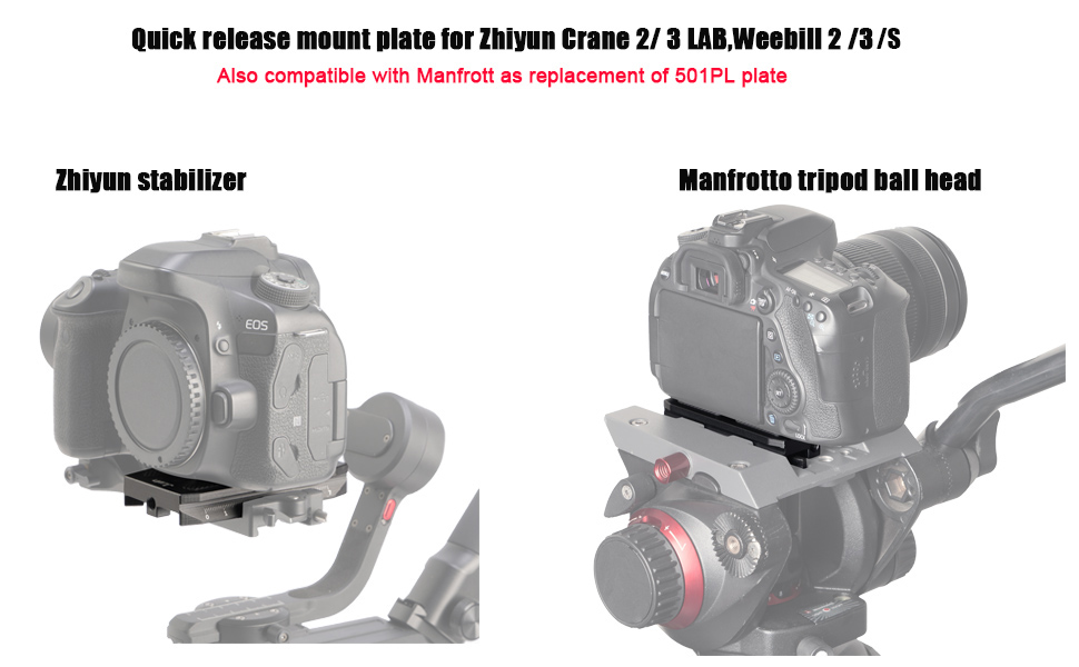 • It is specially designed for DSLR and Mirrorless Camera mounting on Zhiyun Crane 2 3 LAB Weebill 2 3 Weebill-S Gimbal Stabilizer.