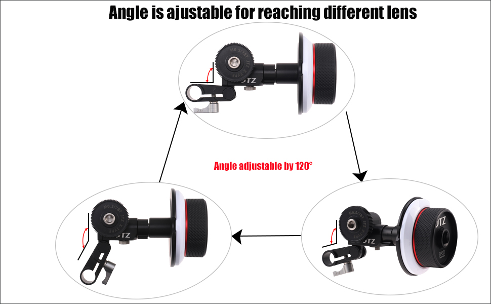 • Work on single 15mm rod,save space.Angle is adjustable to meet need of different lens.Drive gear can be mounted from both side.(Works for both right-handed and left handed)