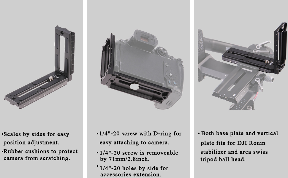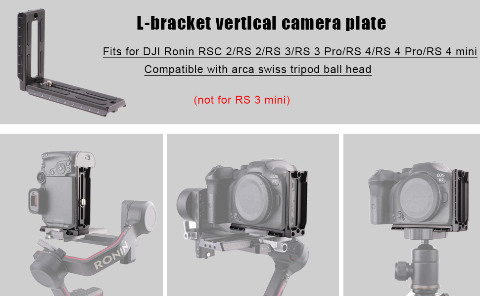 - Both plates fit for DJI Ronin stabilizers (RSC 2 / RS 2/RS 3/RS 3 Pro/RS 4/RS 4 Pro/RS 4 Mini),and also fit for Arca Swiss tripod ball head,for horizontal shooting and vertical shooting.